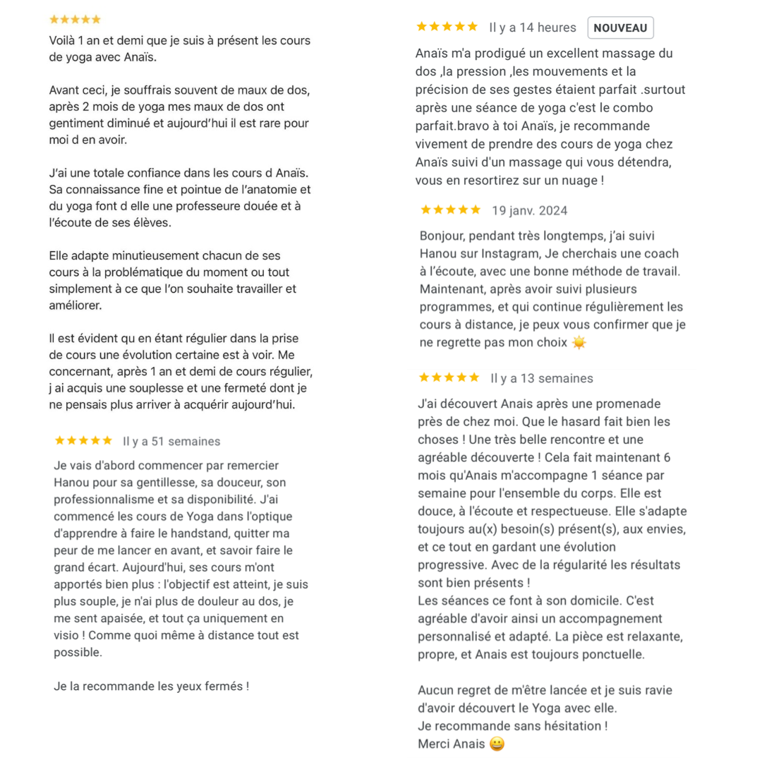 Nous terminons la séance par une relaxation finale (Savasana), un véritable moment de lâcher-prise et de gratitude envers soi-même.